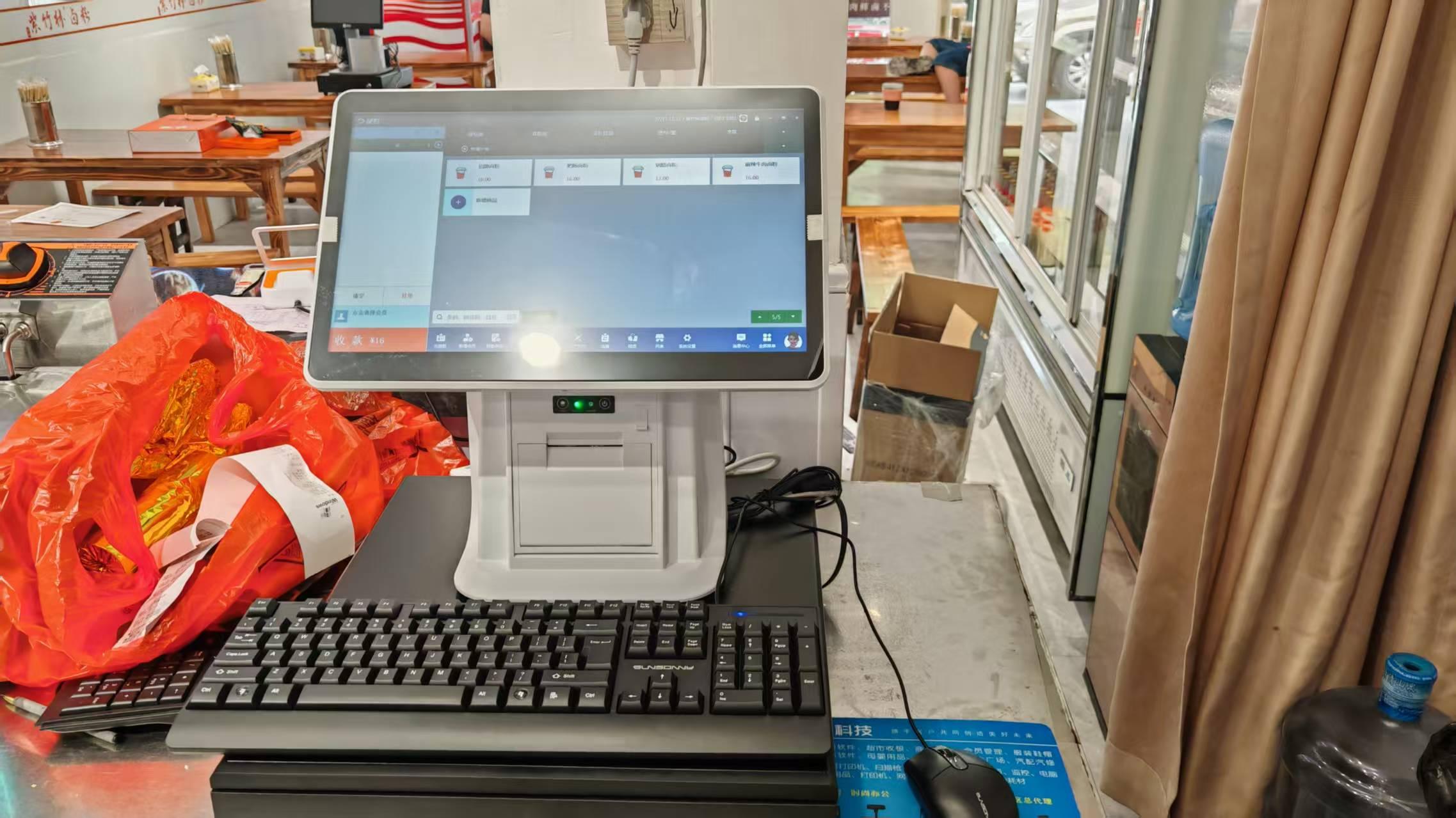收銀設(shè)備采用觸屏收銀一體機搭配銀豹餐飲收銀系統(tǒng)解決方案,操作流程不卡頓,快餐早餐店首先
